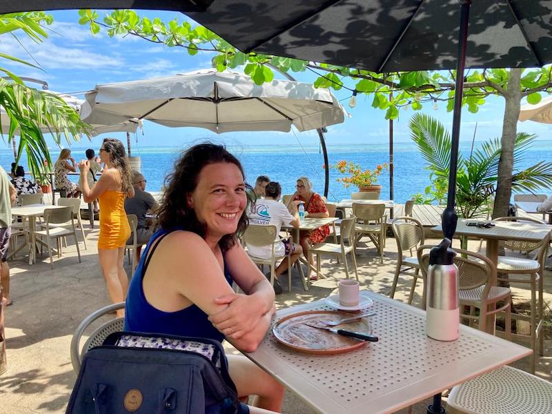 - La mère : parmi les choses positives je citerais le fait d’habiter à proximité de la mer pour la première fois de ma vie (une mer chaude !), de vivre en tongs ou pieds nus, de ne pas réfléchir à la façon de s’habiller le matin, de ne jamais avoir froid, d’avoir une vie sans stress, qui me permet de passer davantage de temps avec les enfants. Pour le négatif, je citerais les bestioles (il n’y a pas de serpents, ni de scorpions, mais on n’échappe pas aux cafards, qui peuvent être assez gros ; je les déteste, c’est dommage, on n’était pas loin du paradis) et l’humidité (rien ne sèche, certains habits moisissent, pas toujours agréable…).