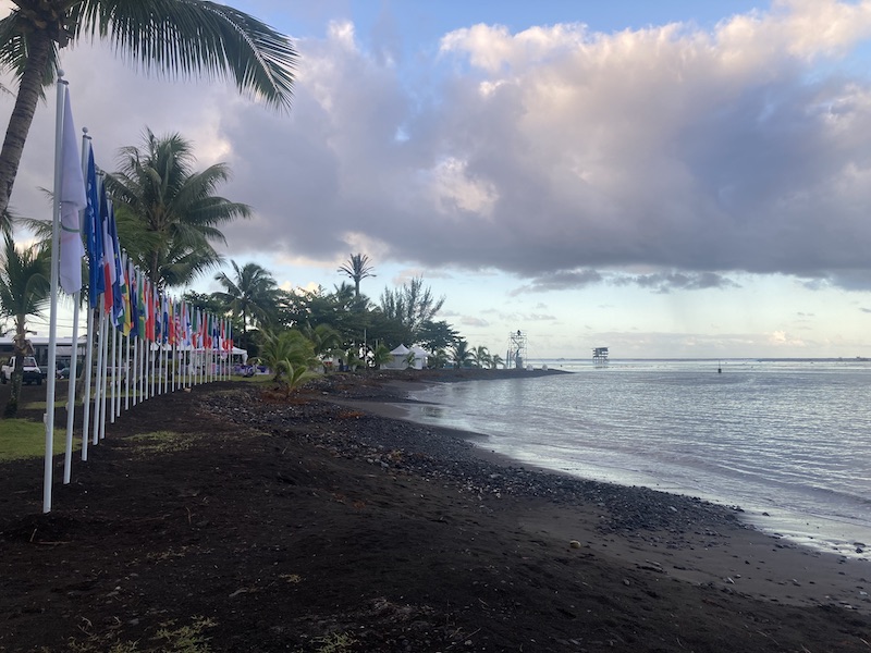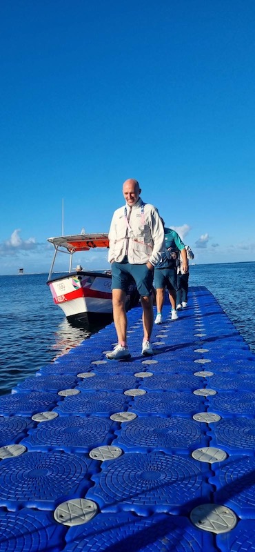 - comprendre l’organisation du site et ses zones compartimentées : base vie des athlètes, mixed zone réservée à la presse pour les interviews, village des athlètes situé sur l’Aranui, un bateau de croisière ancré dans la baie de Vairao, à quelques kilomètres de Teahupo’o.